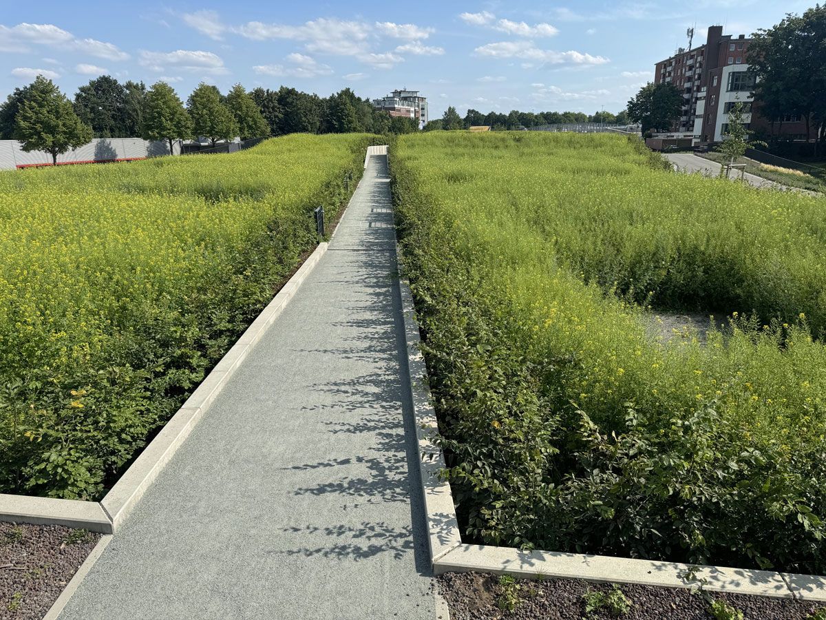 Der Wördemanns Weg quert die A7 mittig und teilt den Deckel in einen nördlichen und einen südlichen Bereich.